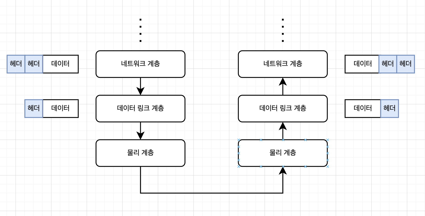 ์ผ๋ฐ ์ฌ์ฉ์๋ ์ ์ก ๋ฐ์ดํฐ๊ฐ ์์ผ๋ฉด ์ด๋ฅผ ์์ฉ ๊ณ์ธต์ ๋ณด๋ด ์ ์ก์ ์์ฒญํ๋ค -> ํ์ ๊ณ์ธต์ผ๋ก ๋ด๋ ค๊ฐ๋ฉฐ ์์ ์ ํ๋กํ ์ฝ์์ ์ ์ํ ํค๋ ์ ๋ณด๋ฅผ ์ถ๊ฐํ๋ค -> ๋ฌผ๋ฆฌ ๊ณ์ธต์์ ๋ฐ์ดํฐ๊ฐ ๋ฌผ๋ฆฌ์ ์ผ๋ก ์ ์ก๋๋ค -> ์์ ํธ์คํธ๋ ์์ ๊ณ์ธต์ผ๋ก ๊ฐ๋ฉด์ ํค๋ ์ ๋ณด๋ฅผ ํด์ ๋ฐ ์ ๊ฑฐํ๊ณ , ์ต์ข ์ ์ผ๋ก ๋ฐ์ดํฐ๋ง ๋ฐ๋๋ค.