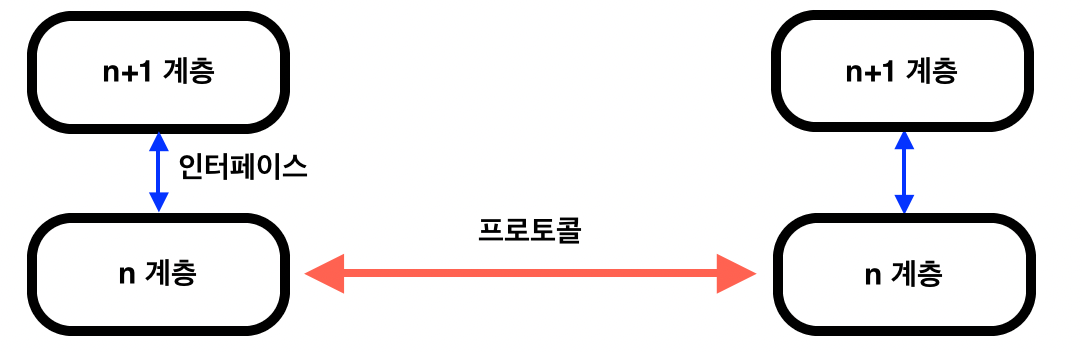 ์์์ ํธ์คํธ์์ ์คํ๋๋ ๊ณ์ธต n ๋ชจ๋์ ์๋ ํธ์คํธ์ ๊ณ์ธต n ๋ชจ๋๊ณผ ๋ ผ๋ฆฌ์ ์ผ๋ก ํต์ ํ๋๋ฐ, ์ด๋ค์ด ์ฌ์ฉํ๋ ๊ท์น์ ๊ณ์ธต n ํ๋กํ ์ฝ์ด๋ผ ํ๋ค.
