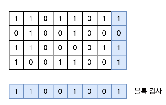 ν¨λ¦¬ν° λ°©μμ μ§μ κ°μ λΉνΈμμ μ€λ₯κ° λ°μνλ©΄ μ€λ₯κ° κ²μΆλμ§ μλ λ¬Έμ μ μ΄ μλ€. λ€μμ λΉνΈμμ μ€λ₯κ° λ°μν λ μ€λ₯λ₯Ό κ²μΆνλ λ°©λ²μΌλ‘λ λΈλ‘ κ²μ¬λ₯Ό μ΄μ©νλ€.